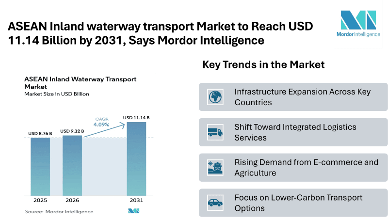 Home Press ReleasesASEAN Inland waterway transport Market to Reach USD 11.14 Billion by 2031, Says Mordor Intelligence