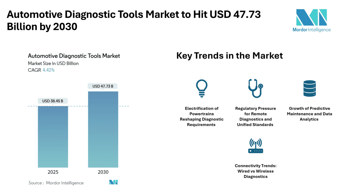 Home Press ReleasesAutomotive Diagnostic Tools Market Forecast to Reach USD 47.73 Billion by 2030, Driven by Electrification, Remote Diagnostics and Connectivity Trends – Mordor Intelligence
