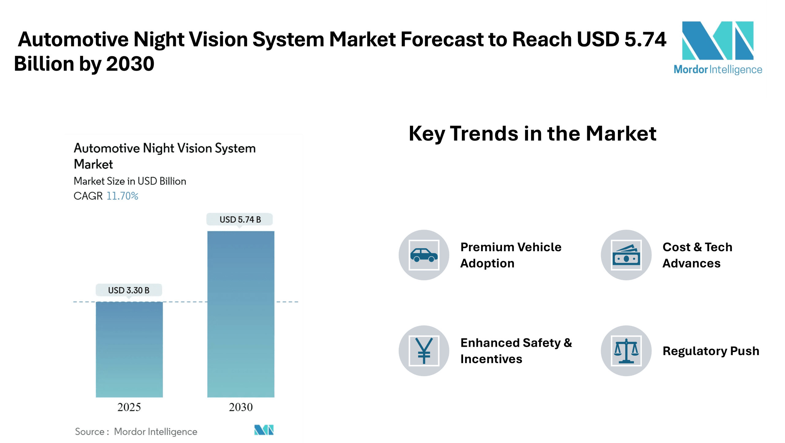 Home Press ReleasesAutomotive Night Vision System Market Forecast to Reach USD 5.74 Billion by 2030, Driven by ADAS Mandates and Premium Vehicle Adoption – Mordor Intelligence