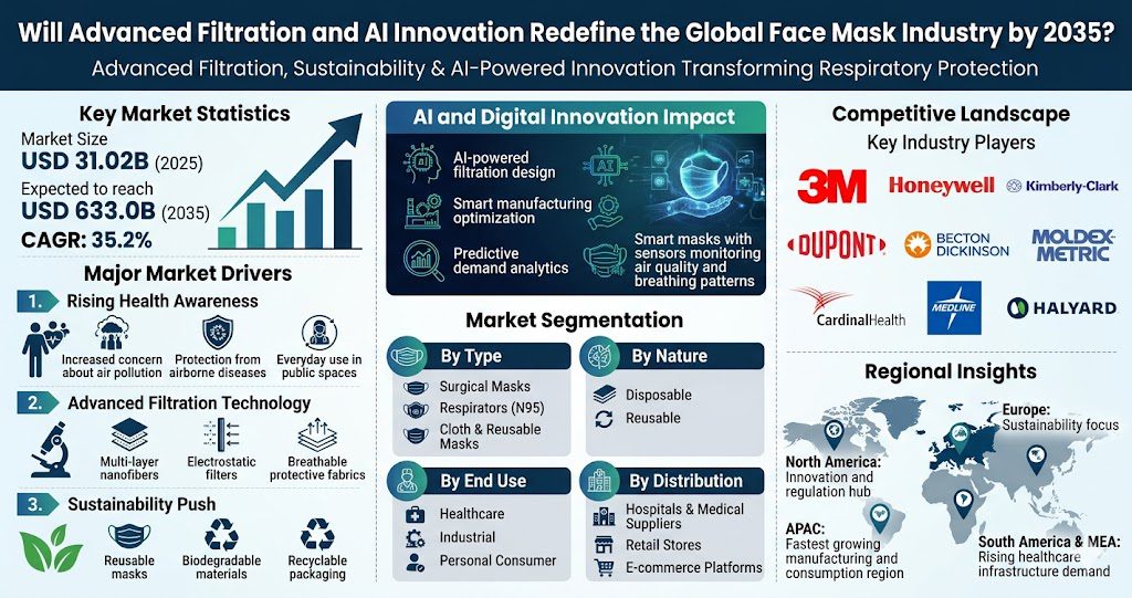 Home Press ReleasesFace Mask Market Set to Soar with 35.2% CAGR by 2035 Driven by Technological Innovations and Consumer Awareness