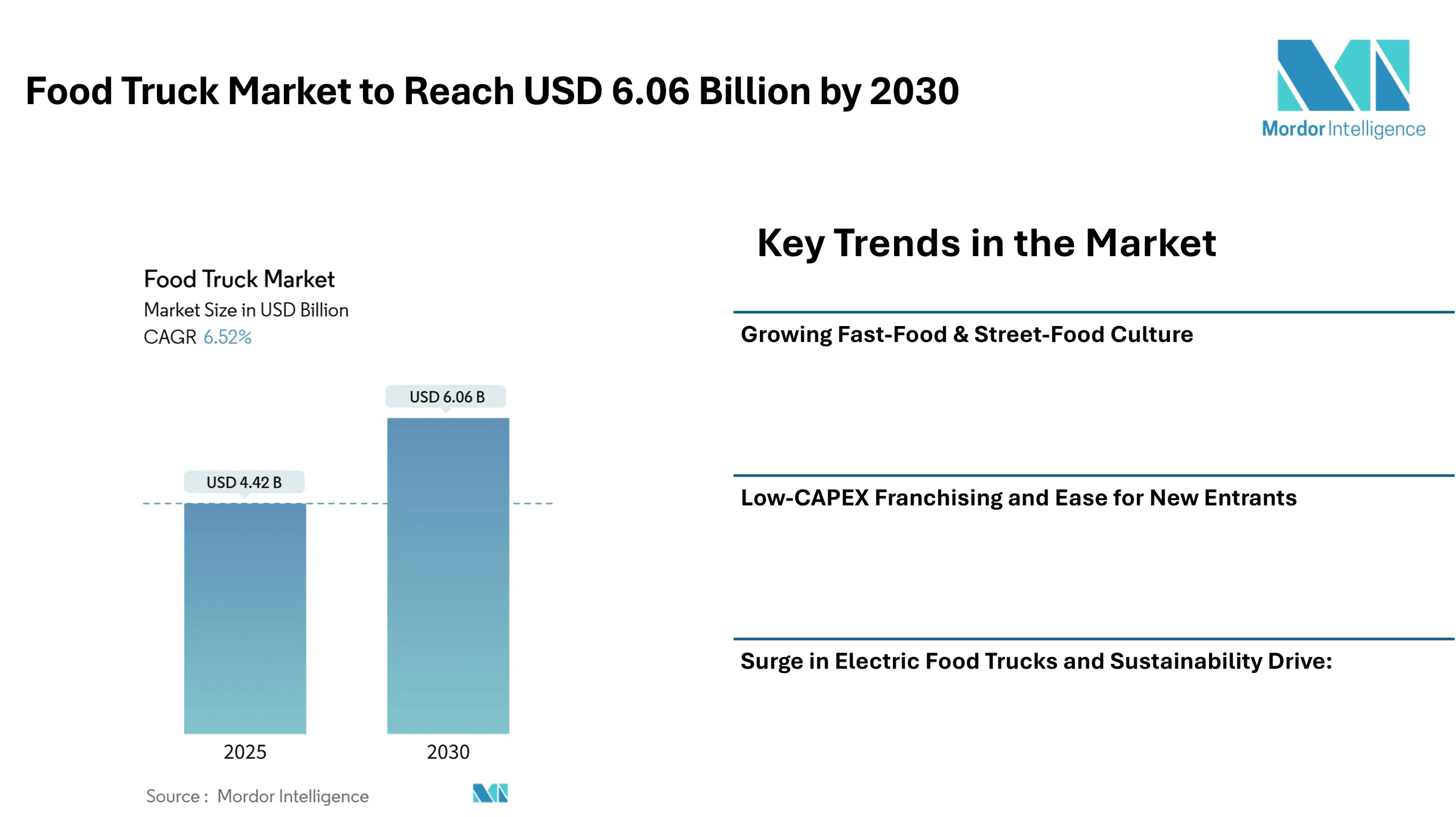 Home Press ReleasesFood Truck Market to Reach USD 6.06 Billion by 2030; Growth Driven by Fast-Food Demand & Rising Urban Dining Culture-Mordor Intelligence