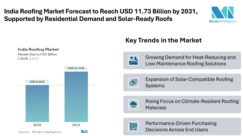 Home Press ReleasesIndia Roofing Market Forecast to Reach USD 11.73 Billion by 2031, Supported by Residential Demand, Solar-Ready Roofs, and Climate-Focused Building Practices