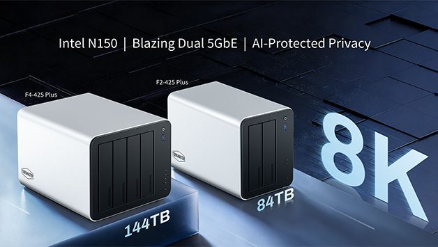 I modelli F4-425 Plus e F2-425 Plus sono alimentati dal processore Intel N150 quad-core (fino a 3,6 GHz), 16GB/8GB di memoria DDR5 e doppie interfacce di rete 5GbE, raggiungendo velocità di trasferimento fino a 1010 MB/s per gestire senza problemi processi di dati ad alta richiesta.